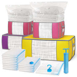 Ausverkauft - 7er Set Große Vakuum Aufbewahrungstasche mit Pumpe, 3 Vakuumbeutel, 3 EDENOO Aufbewahrungstasche mit Griff und Reißverschluss, Grau