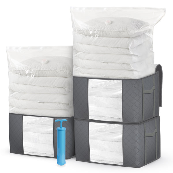 - BIS ZU 80 % PLATZSPAREND: Dank der Vakuum-Aufbewahrungsbeutel und der Pumpe können Sie mehr Dinge einfach hineinlegen und komprimieren so, dass Sie bis zu 80 % Stauraum sparen. Unser Aufbewahrungsset hilft Ihnen nicht nur, mehr Platz zu sparen, sondern sorgt auch für mehr Ordnung in Ihrem Kleiderschrank oder im Koffer.
