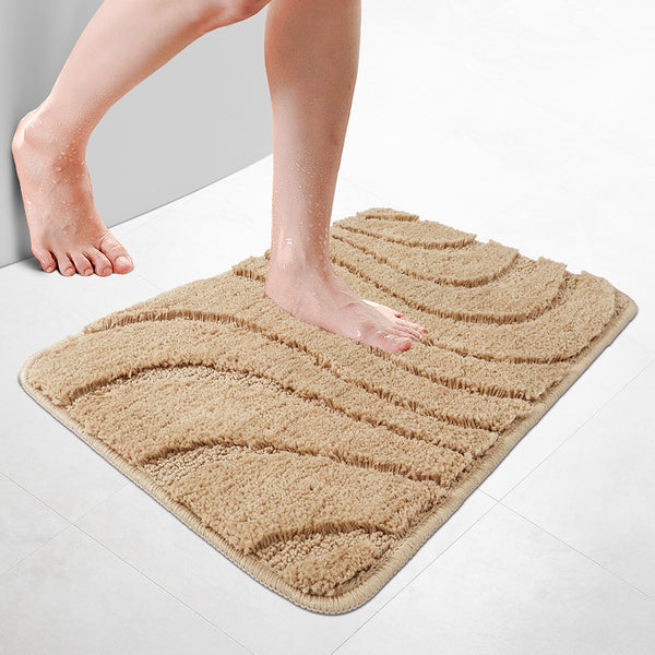 - Dank der saugfähigen Mikrofaser nimmt die Matte Feuchtigkeit schnell auf – auch bei nassen Füßen nach dem Duschen oder Baden. Sie trocknet zügig und hält den Badezimmerboden trocken, indem sie Wasserpfützen rund um Dusche oder Waschbecken reduziert. Ideal für den täglichen Einsatz im Bad.