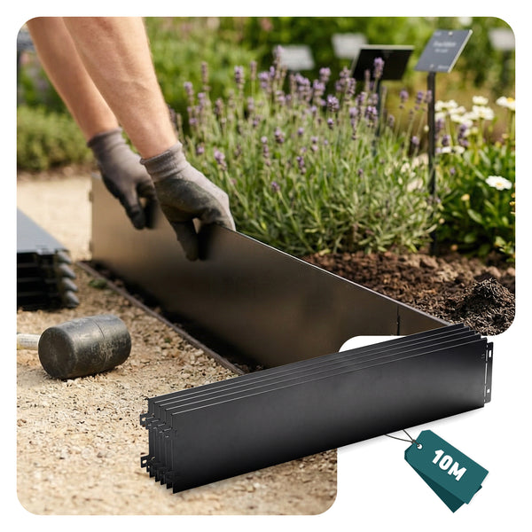 Mit ihrem modernen schwarzen Look fügt sich diese Rasenkante aus Metall harmonisch in jede Außenanlage ein. Sie eignet sich perfekt zur klaren und dezenten Abgrenzung von Rasenflächen, Beeten, Gemüsebeeten oder Gartenwegen – für einen aufgeräumten und strukturierten Garten. - Verschiedene Größen für jedes Projekt