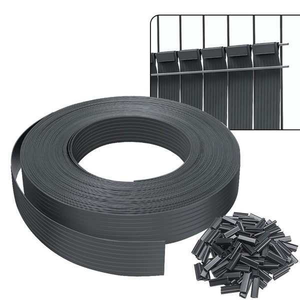 Sichtschutzstreifen für Doppelstabmatten 75m x 4.7cm, PVC Sichtschutz Zaun mit 150 Clips, Grau
