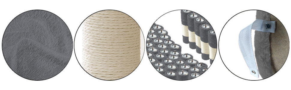 Jeder Pfosten ist fest mit einem Sisalseil umwickelt, das sich durch hervorragende Kratzfestigkeit auszeichnet und den Katzen einen perfekten Spielplatz bietet, auf dem sie ihren natürlichen Instinkt entfalten können.