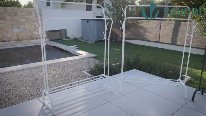 Metall Kleiderständer ,Kleiderstange Garderobenständer mit Schuhregal und 8 seitlichen Haken 110x41x150cm Weiß